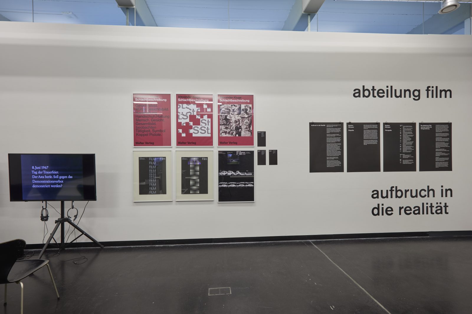 Das HfG-Archiv / Museum präsentiert mit der Ausstellung „Aufbruch in die Realität: Filme von Günther Hörmann – 60 Jahre Institut für Filmgestaltung der HfG Ulm“ eine Auswahl Filmen, die am Institut für Filmgestaltung der Hochschule für Gestaltung Ulm entstanden. Der Anlass ist die Übergabe des Arbeitsarchivs des HfG-Absolventen Günther Hörmann (geb. 1940). Er studierte von 1961 bis 1967 „Visuelle Kommunikation“ an der HfG Ulm. Von 1968 Mitarbeit im Leitungskollegium des Instituts für Filmgestaltung Ulm. Die Ausstellung konzentriert sich auf sechs Film sowie begleitendes Material und gibt erste Einblicke in die Arbeit dieser Abteilung der legendären Hochschule.